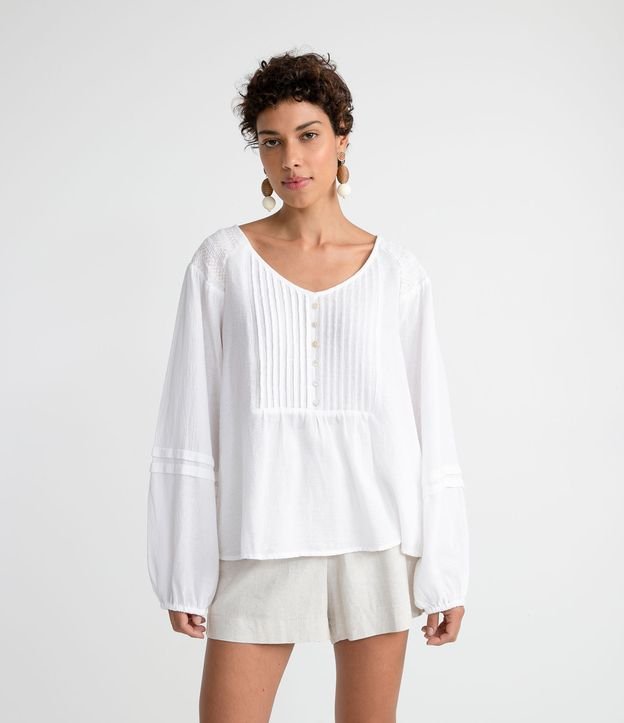 Blusa Bata em Algodão com Detalhe em Lastex nos Ombros