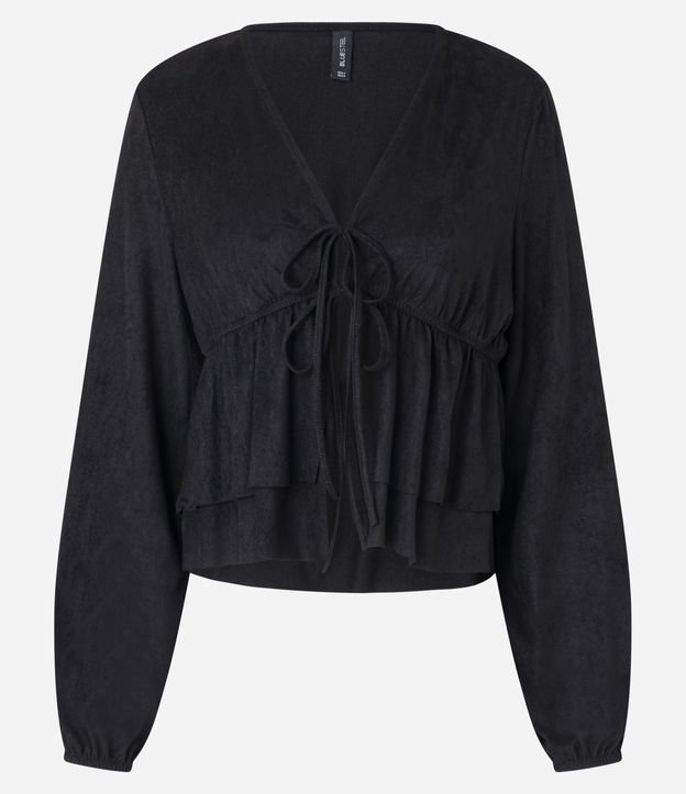 Blusa Bata em Suede com Amarração e Babados Preto