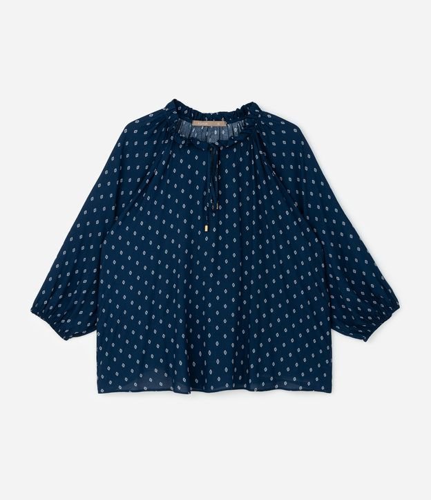 • Blusa Bata Estampada em Viscose com Manga 3/4 Curve & Plus Size Azul 5