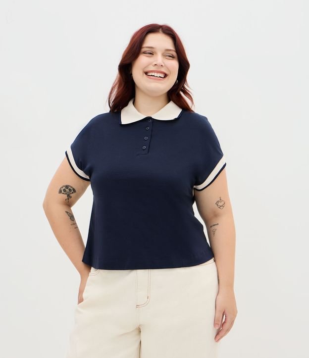 Blusa Boxy em Malha Piquet com Gola Polo Curve & Plus Size Azul