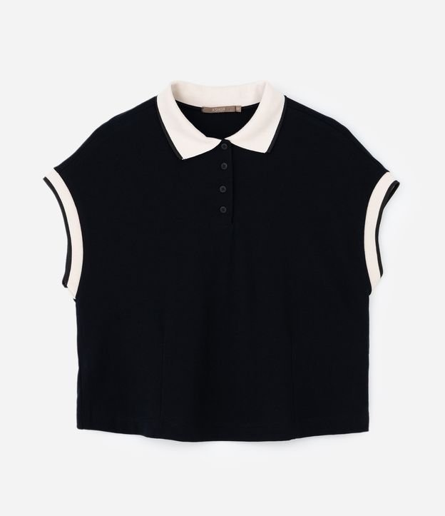 Blusa Boxy em Malha Piquet com Gola Polo Curve & Plus Size Preto