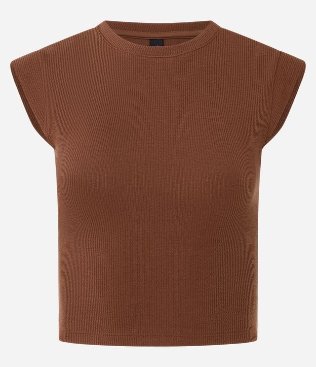 Blusa Canelada com Cava Diferenciada Marrom Claro