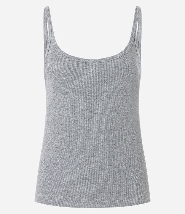Blusa Canelada em Ribana com Decote U e Alça Fina Cinza