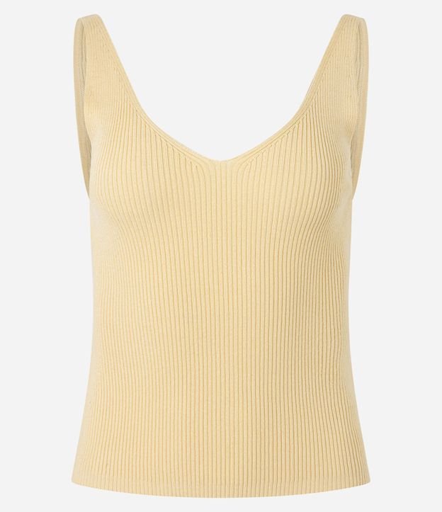 Blusa Canelada em Tricô com Decote V e Costas Decotadas Amarelo