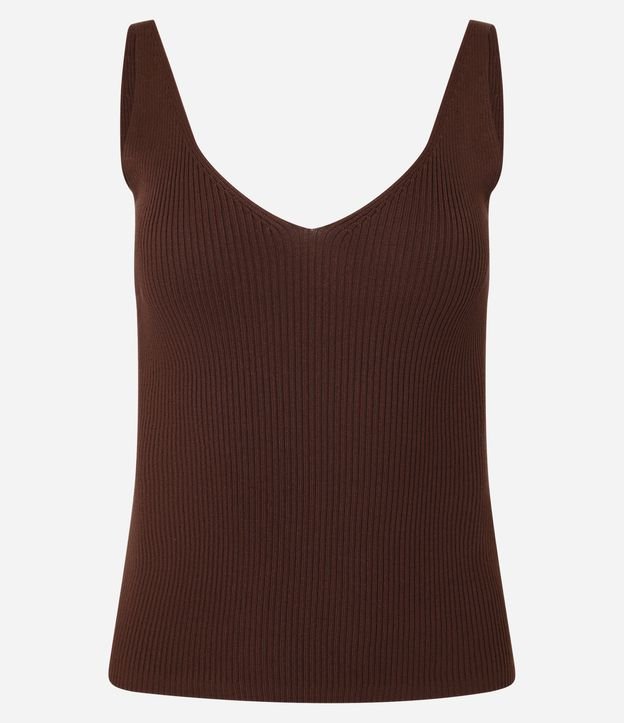 Blusa Canelada em Tricô com Decote V e Costas Decotadas Marrom