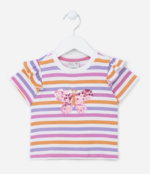 Blusa Canelada Infantil com Babado e Borboleta em Paetê - Tam 1 a 5 anos