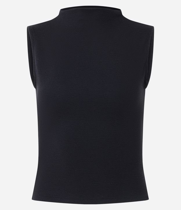 Blusa Canelada Sem Manga em Algodão com Golinha Preto