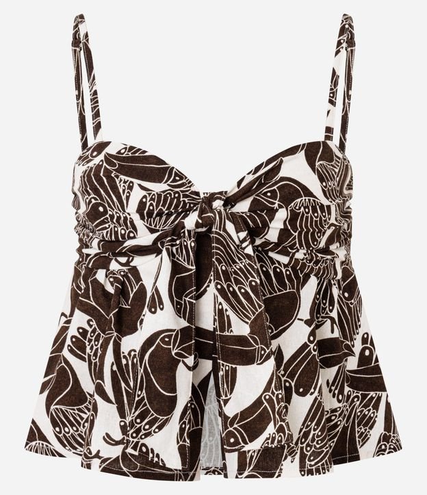 Blusa com Alças e Amarração Frontal Estampado Marrom