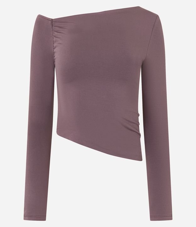 Blusa com Decote Assimétrico Detalhe Drapeado na Cava e Manga Longa