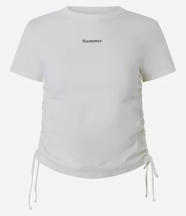 Blusa com Lettering Summer e Amarração Lateral na Barra Branco