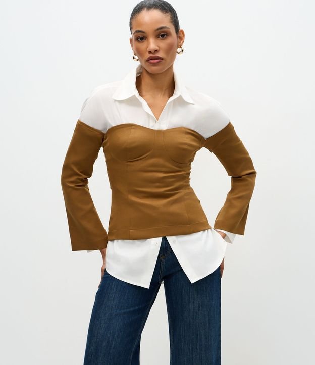 Blusa Corpete Alfaiatada com Decote Ombro a Ombro Marrom