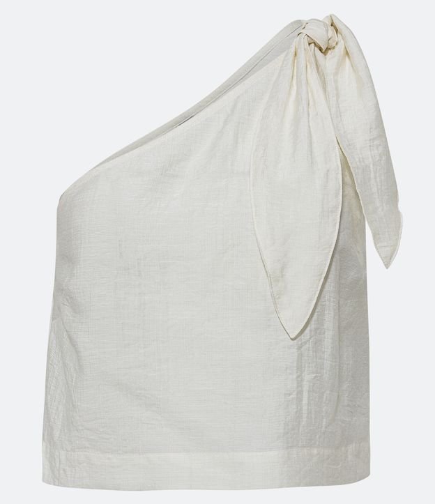Blusa Cropped Acetinada de Um Ombro Só com Nózinho