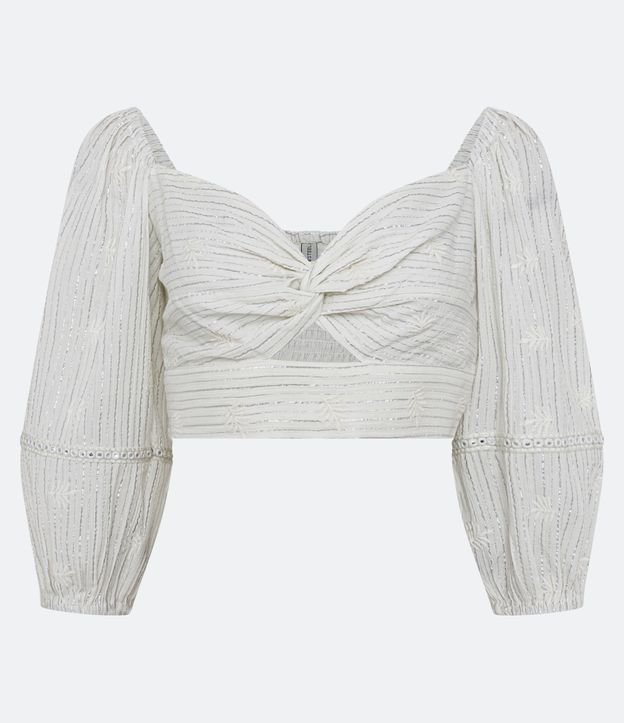Blusa Cropped Ana Ruga com Torcidinho no Busto e Fio Metalizado