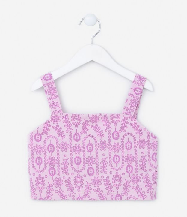 Blusa Cropped com Textura Broderie - Tam 5 a 14 Anos