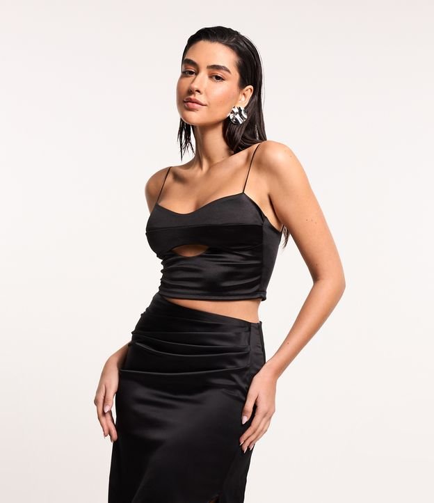 Blusa Cropped Corsetada com Recorte Vazado no Busto