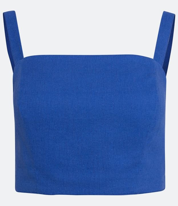 Blusa Cropped de Alça em Linho com Lastex nas Costas