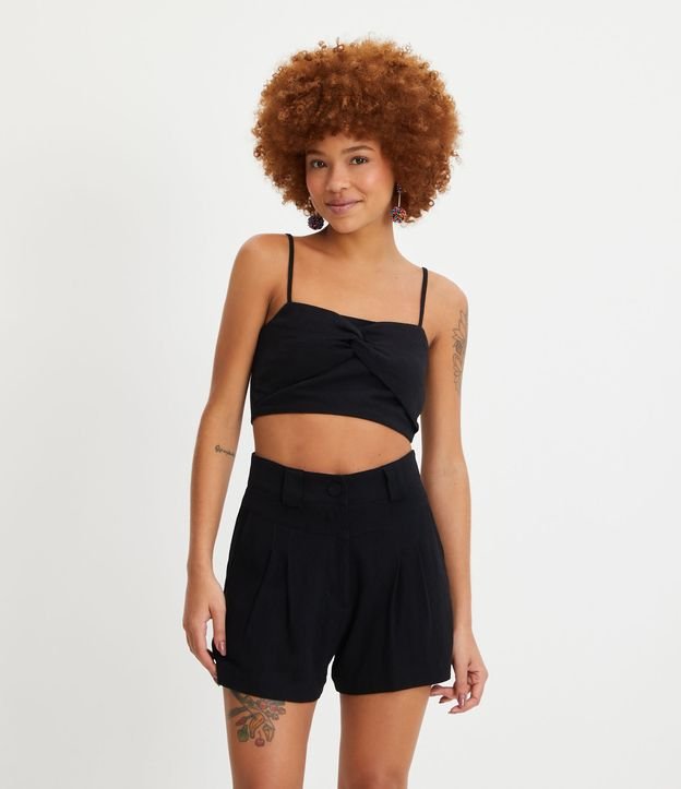 Blusa Cropped de Alça em Linho com Torcidinho no Busto e Lastex nas Costas