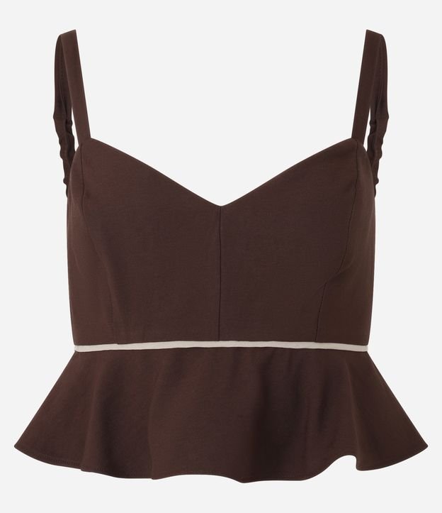 Blusa Cropped em Alfaiataria com Alças de Elástico e Lastex nas Costas Marrom