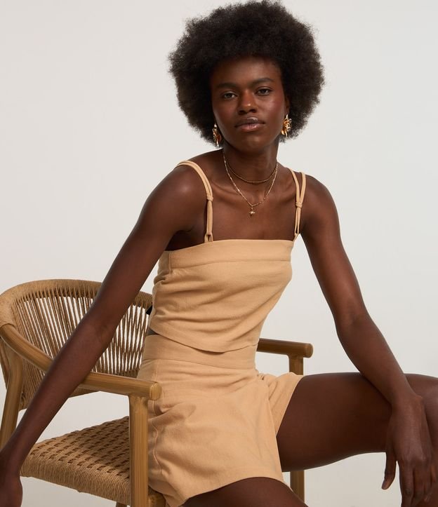 Blusa Cropped em Crepe com Amarração Bege