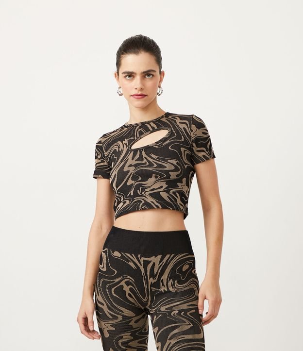 Blusa Cropped em Jacquard Sem Costura com Manga Curta e Estampa Abstrata