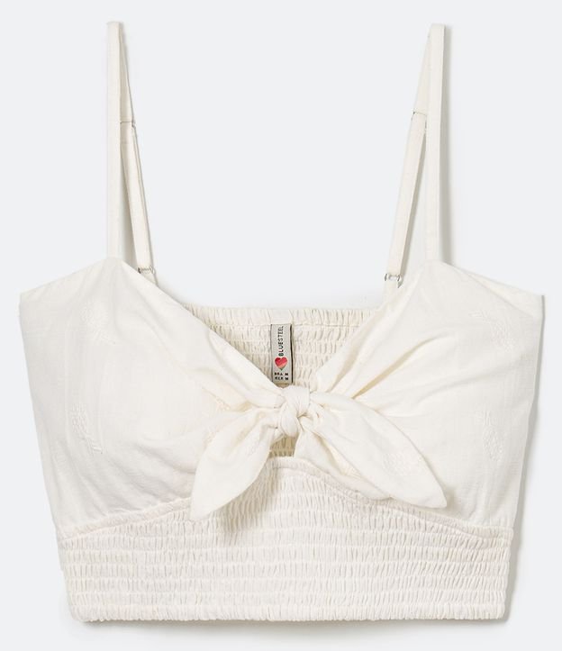 Blusa Cropped em Linho com Bordado Abacaxi e Amarração