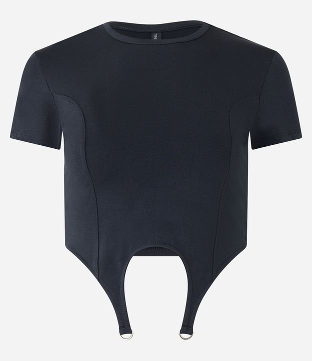 Blusa Cropped em Meia Malha com Bainha Assimétrica e com Fivela