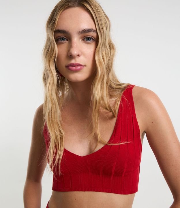 Blusa Cropped em Tricô com Detalhes em Linhas Horizontais