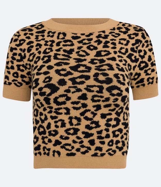 Blusa Cropped em Tricô com Manga Curta e Estampa Animal Print Onça