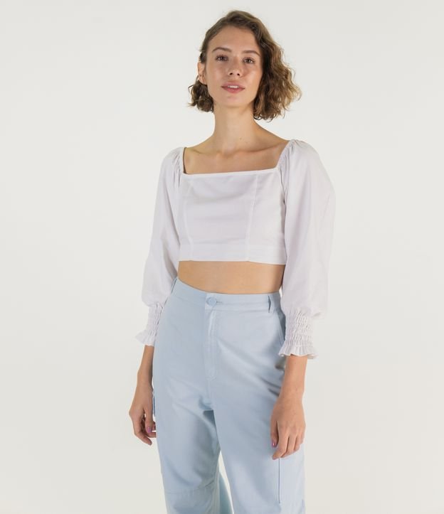 Blusa Cropped Lisa com Mangas Bufantes