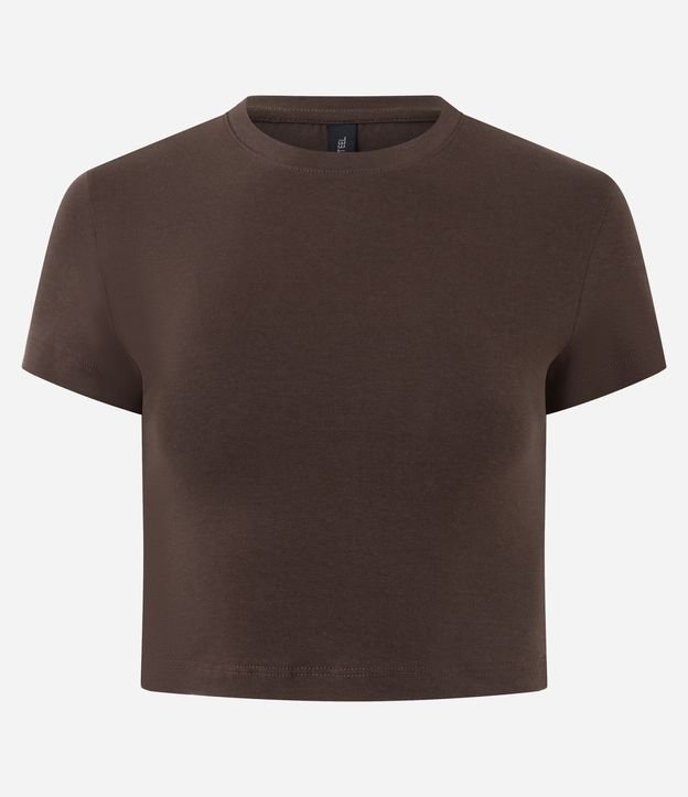 Blusa Cropped Manga Curta em Cotton Marrom