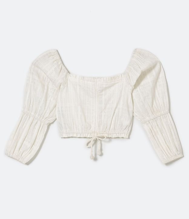 Blusa Cropped Manga Longa com Amarração na Barra e Fio Metalizado