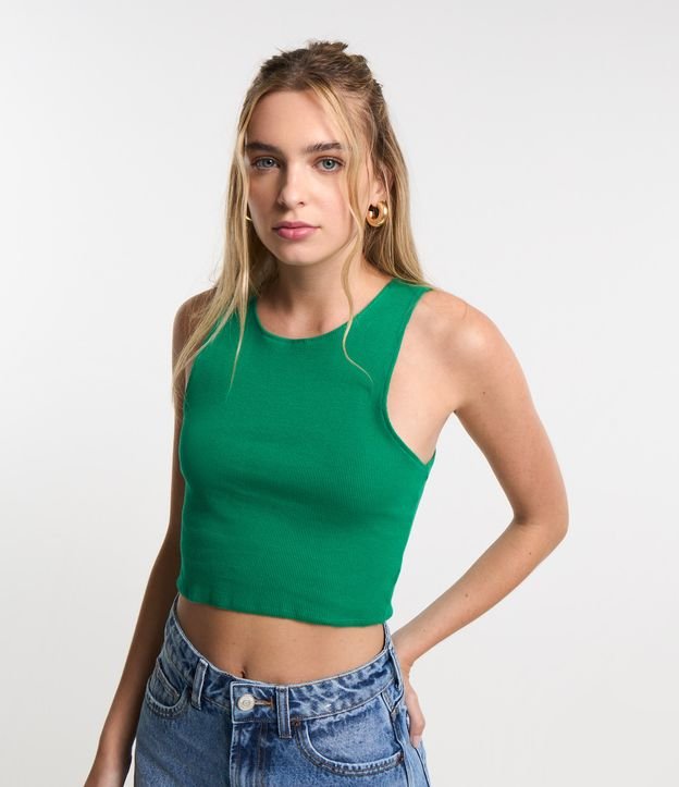 Blusa Cropped sem Manga em Algodão com Textura Canelada