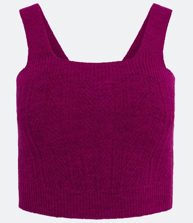 Blusa Cropped Sem Manga em Tricô Texturizado