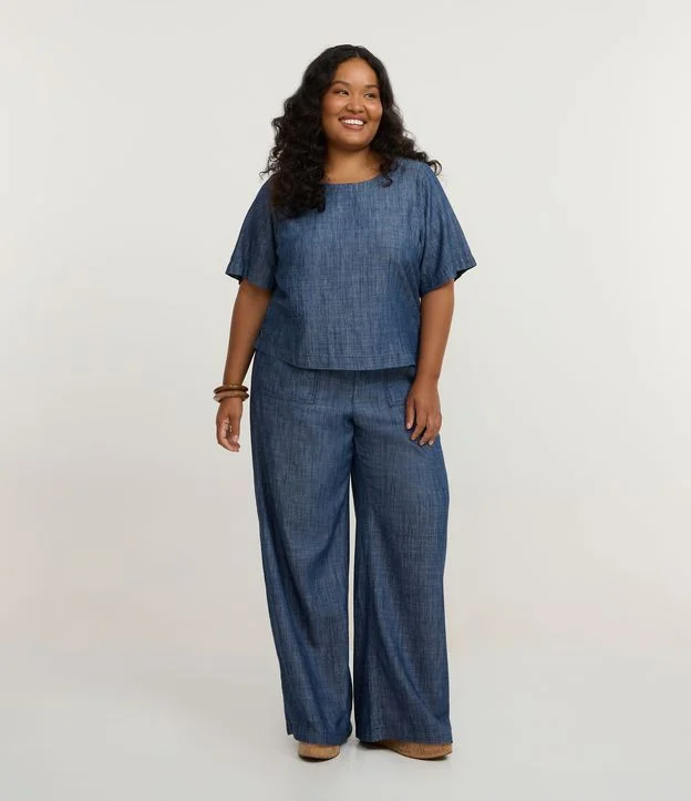 Blusa Curta em Sarja Curve & Plus Size Azul