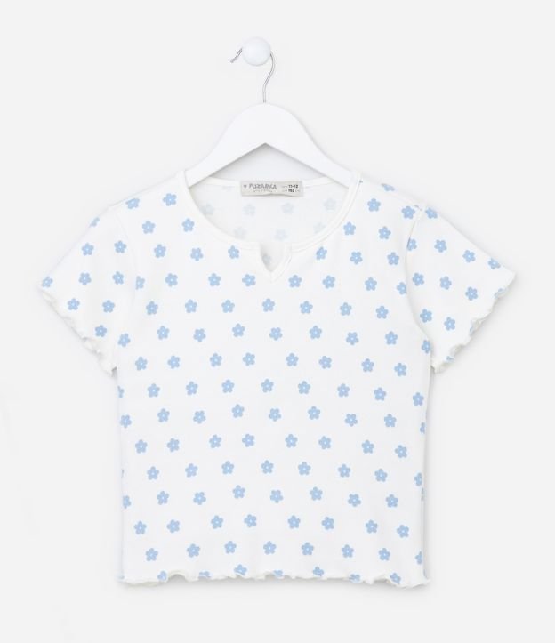 Blusa Curta Infantil com Estampa de Mini Florzinhas - Tam 5 a 14 Anos