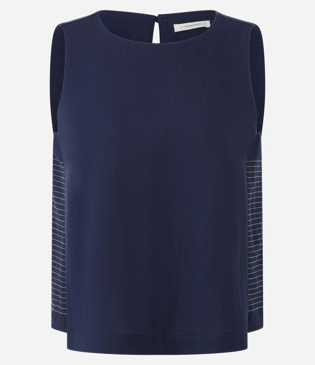 Blusa Curta sem Manga com Detalhe Listrado Azul