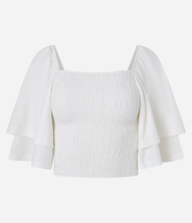 Blusa Curta Texturizado com Manga Godê e Lastex