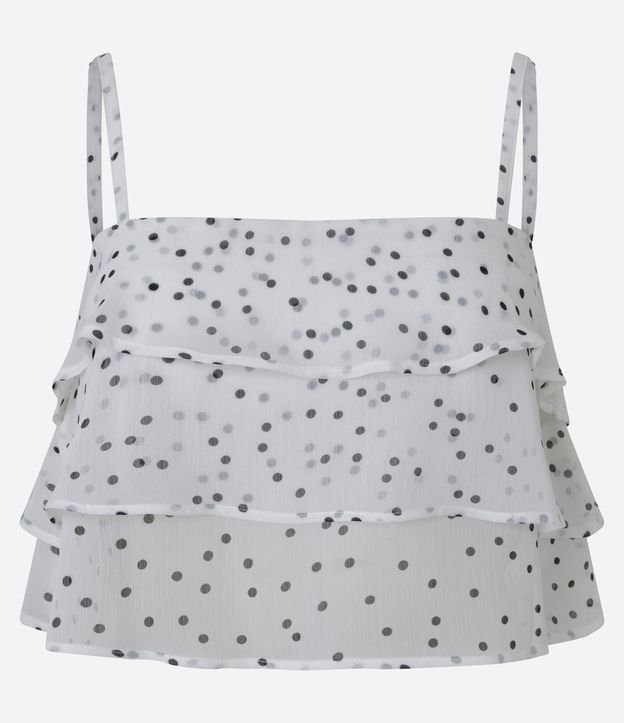 Blusa de Alcinha em Chiffon Poá com Babados Branco