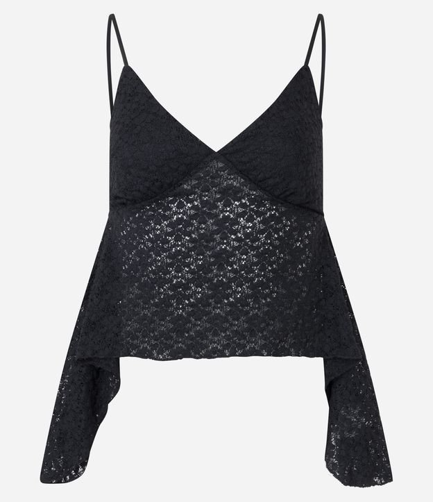 Blusa de Alcinha em Renda com Pontas Assimétricas Preto