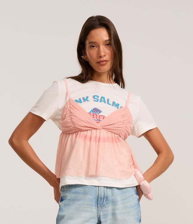 Blusa de Alcinha em Tule com Busto Franzido Rosa