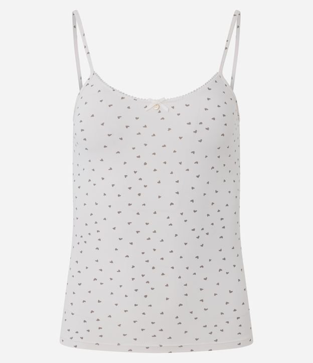 Blusa de Pijama Alcinha em Microfibra com Estampa de Coração Off White