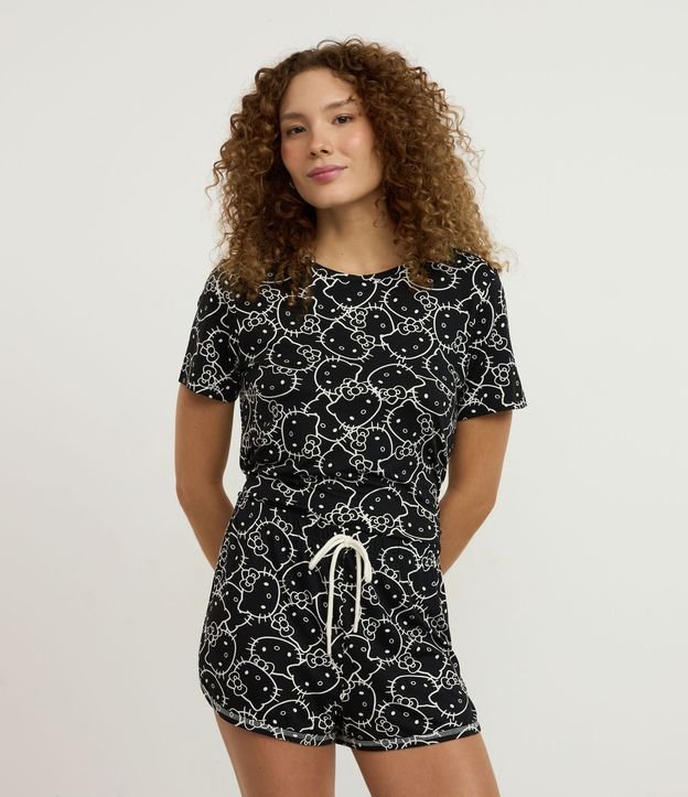 Blusa de Pijama em Algodão com Estampa Hello Kitty e Toque Suave Preto