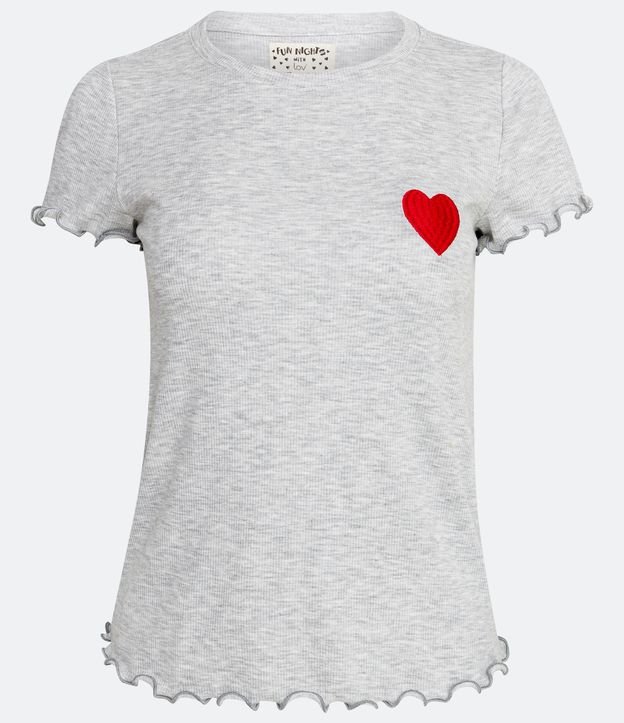 Blusa de Pijama em Ribana com Manga Curta e Bordado Coração no Peito