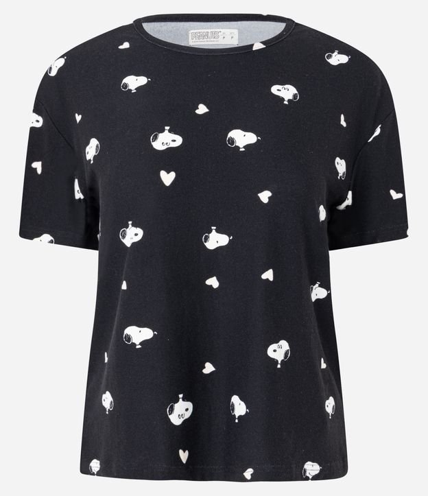 Blusa de Pijama Peach Touch com Estampa Snoopy e Corações Preto