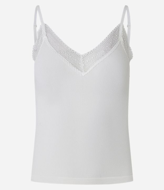 Peça avulsa de pijama. A blusa tem alças finas e rendinha no decote.