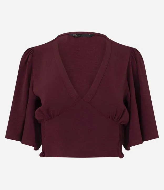 Blusa em Airflow com Decote em V e Lastex nas Costas Vinho