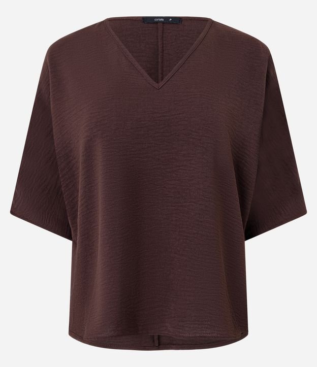 Blusa em Airflow com Decote V e Mangas Amplas Marrom