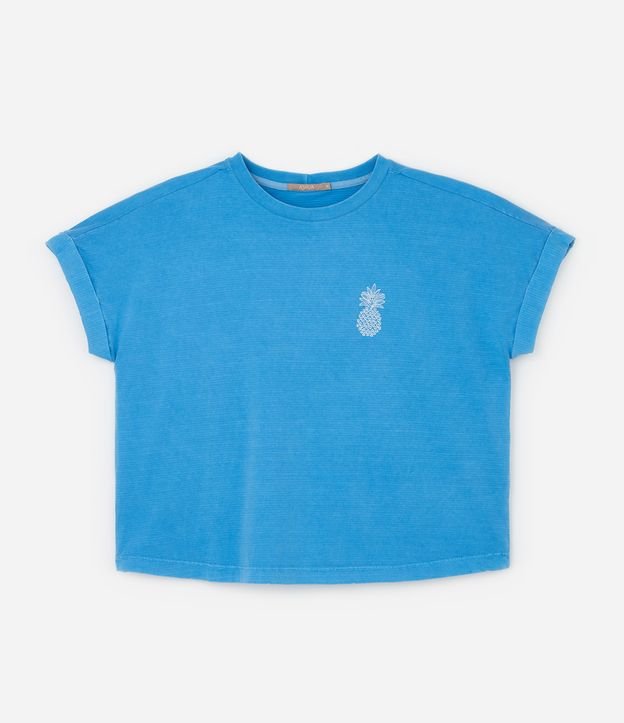 • Blusa em Algodão com Bordado de Abacaxi e Manga Dobrada Curve & Plus Size Azul 1