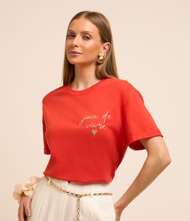 Blusa em Algodão com Bordado Joie de Vivre e Coração de Strass