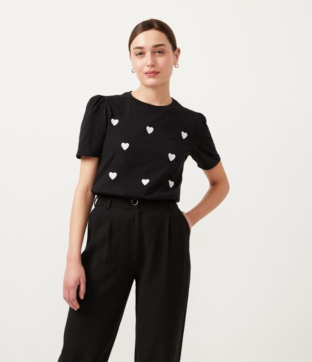 Blusa em Algodão com Bordados de Corações e Mangas Bufantes